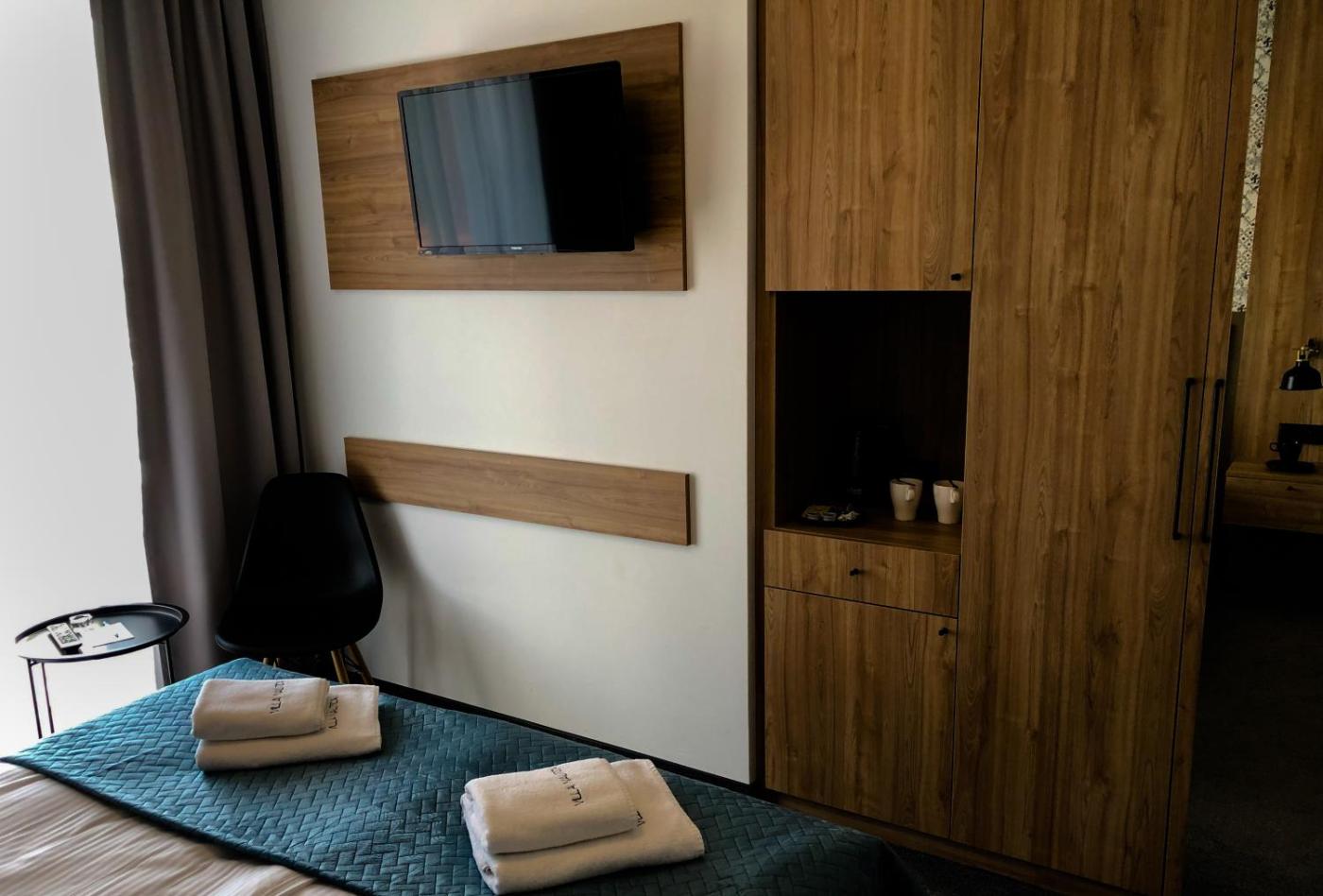 Wszystkie pokoje urządzono w klasycznym stylu. Są one wyposażone w telewizor, lodówkę i czajnik elektryczny. Niektóre z nich obejmują balkon. W każdym pokoju mieści się łazienka z prysznicem, ręcznikami, suszarką do włosów i bezpłatnym zestawem kosmetyków, a także część wypoczynkowa na świeżym powietrzu. Do dyspozycji Gości jest ponadto sejf i pościel. W dniu przyjazdu oferowany jest zestaw powitalny obejmujący wodę mineralną, kawę i herbatę.
