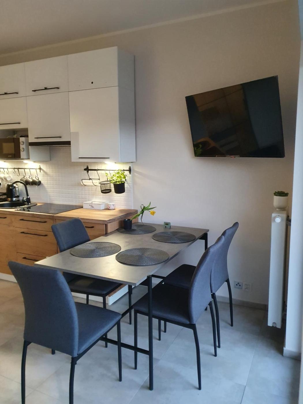 Apartament z 1 sypialnią. Guests can make meals in the kitchen that is fitted with a stovetop, a refrigerator, a dishwasher and kitchenware. Boasting a terrace with garden views, this apartment also offers a private entrance and a flat-screen TV. The unit has 2 beds. Apartament - 4 osobowy. Powierzchnia pokoju ok.: 38 mkw.