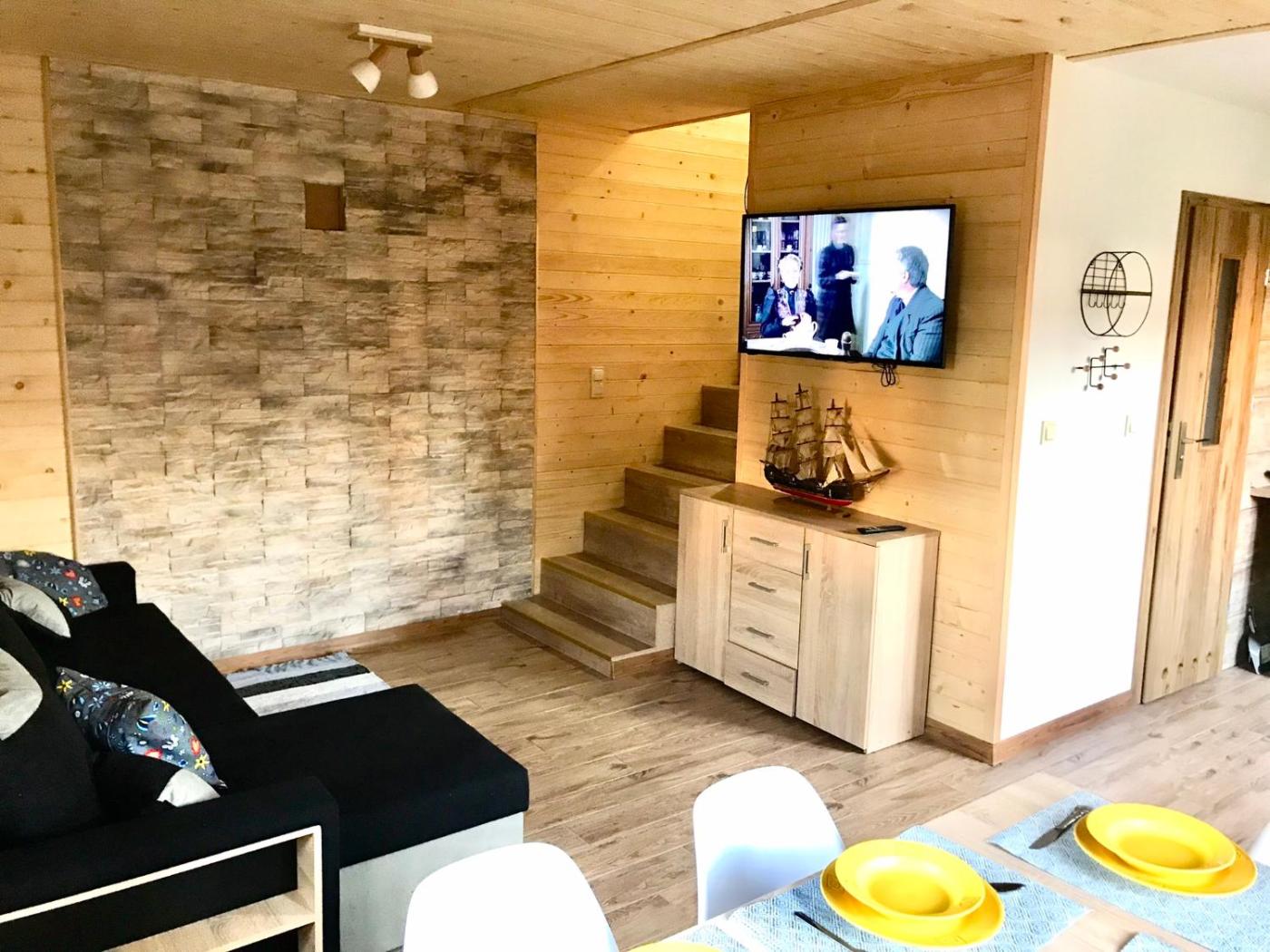 Dom z 2 sypialniami. Featuring a private entrance, this air-conditioned holiday home is comprised of 1 living room, 2 separate bedrooms and 1 bathroom with a shower and a hairdryer. Guests will find a stovetop, a refrigerator, kitchenware and a microwave in the well-equipped kitchen. The holiday home also has a barbecue. Boasting a terrace with garden views, this holiday home also offers a tea and coffee maker and a flat-screen TV with streaming services. The unit offers 4 beds. Dom wakacyjny - 8 osobowy. Powierzchnia pokoju ok.: 60 mkw. ;